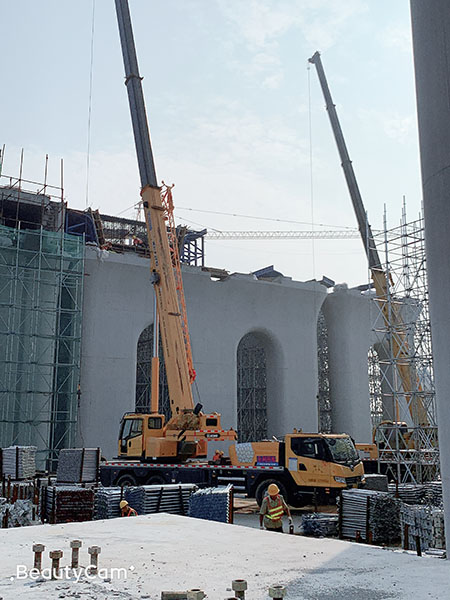 一般為貨運鐵路,墩身為圓端形式,有單牛腿和雙牛腿兩種,該類墩柱模板一般采用體內(nèi)對拉形式加固,頂部牛腿需設(shè)置單獨的支撐,以滿足澆筑需求。模板分為墩身、墩帽兩部分,墩帽一般采用1/4圓形式,墩身根據(jù)截面尺寸大小采用1/4圓或1/2兩種形式。我公司生產(chǎn)的模板重量輕、結(jié)構(gòu)強度大,在各個施工現(xiàn)場都得到了客戶的一致好評。